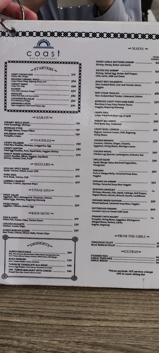 Guests rave about the restaurant's unique boodle fight menu, perfect for sharing and adding a fun twist to dining. Signature dishes like Tuna Kilawen and Karekare highlight the skilled culinary craftsmanship, marrying local flavors with quality ingredients. Patrons appreciate the attentive service provided by the friendly staff, creating a welcoming atmosphere that keeps them returning. Coast Bar & Restaurant promises an unforgettable dining experience, with every dish prepared to satisfy your cravings amid a picturesque setting.